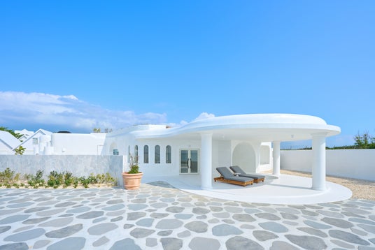 「プリシアスイートヴィラ」は、プライベートな空間をお楽しみいただける専用プールやサウナ、屋上サンセットダイニングなどの設備を備えているほか、広々としたリビングと開放感のあるパウ ダールームやゆったりとしたベッドルームなど、室内は白を基調とした温かみのある雰囲気が特徴です。1日1組限定のラグジュアリーな空間で特別な旅をお楽しみください。