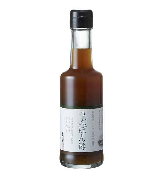 大根おろしと刻み昆布の具感が楽しい「食べる」つぶぽん酢。かつおだしの風味と、柚子果汁の華やかな味わいが印象的です。