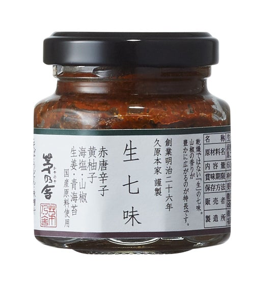 国産唐辛子に山椒、柚子皮、胡麻などを練り合わせた香り高い生七味。ピリ辛の薬味で、料理に幅広く使えます。