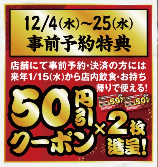 「資さんうどん」から、今年1年の感謝の気持ちと、2025年が皆さまにとって素晴らしい1年になりますようにとの願いを込めたプレゼント。早めのご予約で、是非、お得なクーポンをゲットしてください!