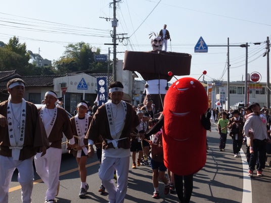 写真:弥五郎どん祭りに参加するそお星人/提供:曽於市商工観光課