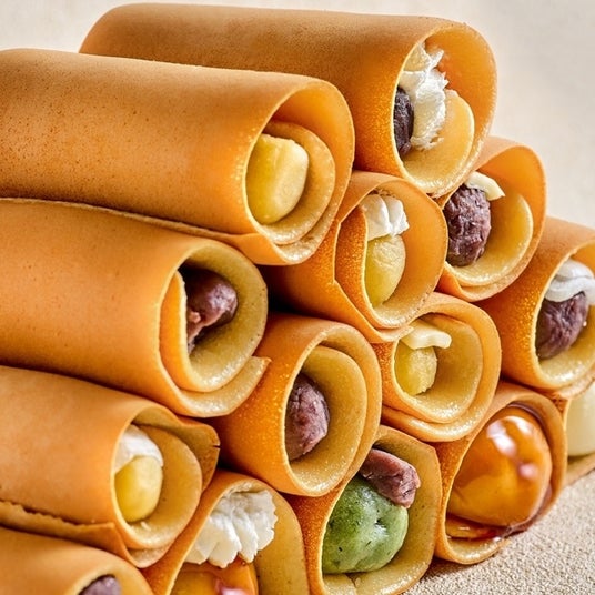 海苔に見立てているのはブラックココアで作られたクレープ生地。こちらを巻くことで手を汚さずに食べられます。見た目も開け方も完全におむすびなのに、食べるとしっとりフワフワのケーキ。
