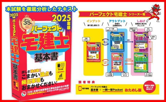 建築・住宅・インテリア・資格等の専門書を発行する株式会社建築資料研究社(所在地:東京都豊島区、代表取締役社長:馬場栄一)のグループ企業で、不動産関連の専門書(実務・法律等)及び資格試験参考書の出版・販売を行う株式会社住宅新報出版(所在地:東京都豊島区、代表取締役:馬場 栄一)は、2024年12月9日(月)に『2025年版 パーフェクト宅建士基本書』を全国の書店・オンライン書店にて発売いたします。