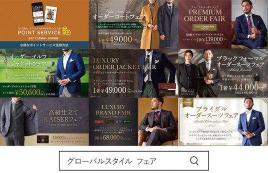 グローバルスタイル《全店舗》対象プランご利用で、本格オーダースーツ2着47,000円~(税込51,700円~)