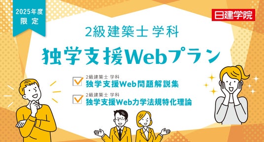 資格取得支援スクールの日建学院を運営する株式会社建築資料研究社(所在地:東京都豊島区、代表取締役社長:馬場栄一)は、2025年度(令和7年度)2級建築士 学科試験を受験される方に向け、独学の強い味方「Web問題解説集」をプラスした独学支援プラン2種を2025年度限定で新規販売中です。独学を考えている方や、通学が難しい方を日建学院は応援いたします!