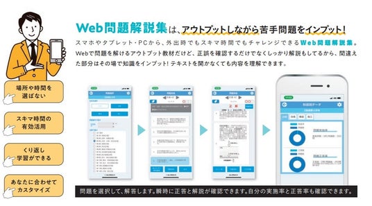スマホやタブレット・PCから、外出時でもスキマ時間でもチャレンジできる「Web問題解説集」。