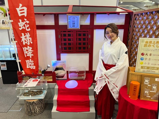 「白蛇神社コーナー」2025年の干支は「巳」!白蛇神社で開運記念!白蛇の抜け殻などが当たるくじ引きも開催!(※くじ引き・白蛇との写真撮影は有料)