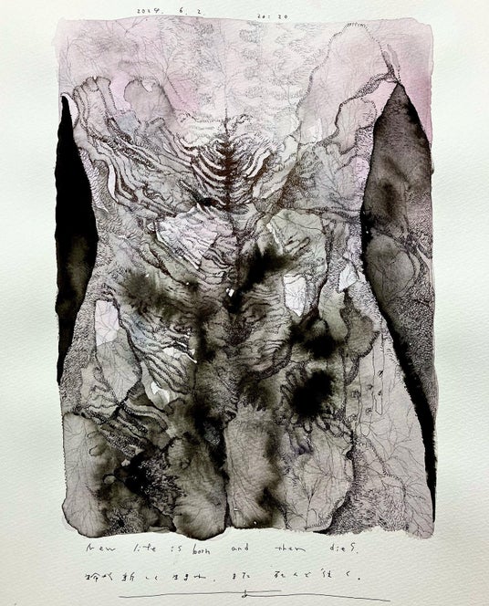 普段の生活、日常で起きる出来事、人との繋がりのなかにある人のおもいに視点を向け描いています。おもいは目には見えずとも常にあり、潜んでいて、変化し、全てを知ることができないものです。そのおもいたちを感じていただけたらと思います。作品はダーマトグラフ(油性色鉛筆)を主に使用して制作をしています。