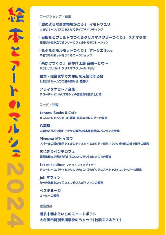 筑後地区観光協議会絵本とアートでコミュニケーションを!をテーマに、今年も、ものがたりを伝える、つくる、とどける、商品の販売やワークショップなどを開催