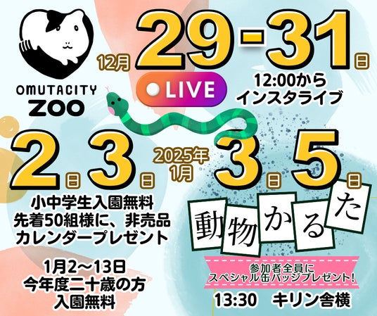 大牟田市動物園の年末年始のイベントについてのお知らせです。