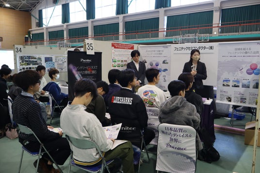 本研究会は対面形式で開催し、会員企業・学生のブース内での距離も近く、ダイレクトにお互いの反応がわかるものとなりました。令和3年度より会場を学校体育館から、より広いスペースの霧島市隼人体育館に変更して実施しています。今回はKTC会員企業68社が参加し、過去最高の参加数となり熱気にあふれていました。