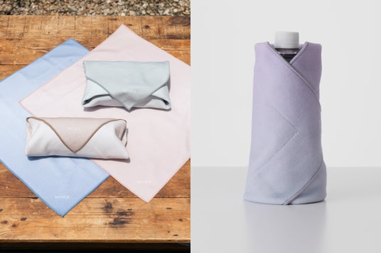 「ペットボトルだけではなく、おにぎりやフルーツなど小さめなものを保冷剤と一緒に巻けたり、結ぶ必要がないのでお子様がひとりで簡単に包めるのも便利な点です」