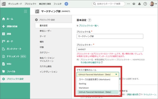 Markdown記法」の2種類があります。今回は「Markdown記法」がアップデートし「GitHub Flavored Markdown(Beta)」として、Backlogでより他サービスと互換性のある記法が利用できるようになります。これにより、異なるサービス間でテキストを貼り付けてもレイアウトが崩れる心配がなくなります。