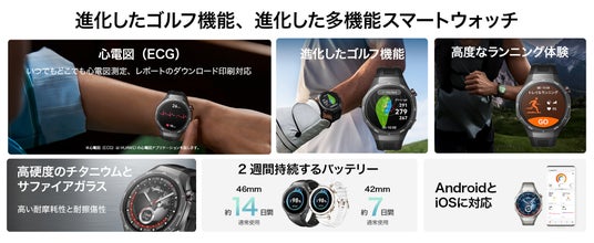 特にゴルフ機能は新たな3Dゴルフマップ表示となりグローバルコースにも対応。「グリーンセンターまでの距離」や「タッチしたポイントまでの距離測定」に加えて、新たに「グリーンの傾斜」や「各ハザード・グリーンフロントエッジ・バックエッジまでの距離」、「グリーンの方向」機能が追加され、より戦略的なゴルフプレーをサポートします。そのほか40mのフリーダイビングに対応し※7、より高度なランニングモニタリングも実現することで、あなたのスポーツライフによりプロフェッショナルに寄り添います。もちろん、進化した健康管理機能、スマートアシスタント機能、通常使用で最大14日間※8のパワフルバッテリーも搭載しています。