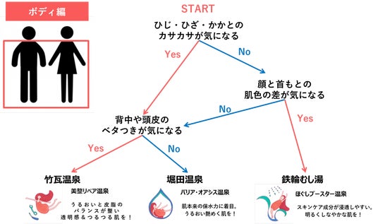 今回の分析結果を元に、肌への作用が異なる3施設の温泉の魅力を体験できる「新美肌湯治 ~ボディ&フェイス湯めぐり~」を開発しました。肌の状態は季節や体調によって変わります。チャートを利用しながら、観光客のみならず市民も、別府温泉の魅力を再発見し、美と健康を意識した美肌湯治を楽しむことができます。