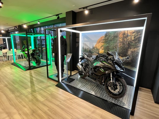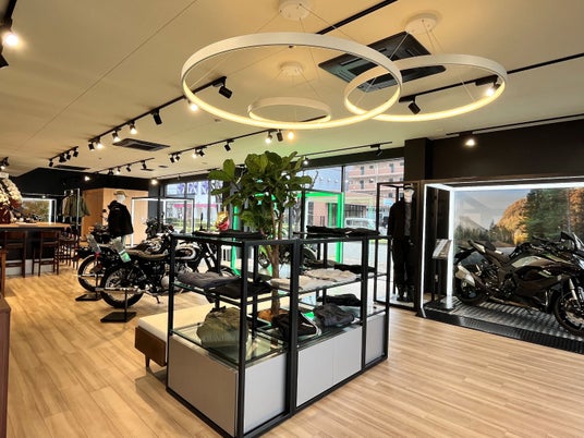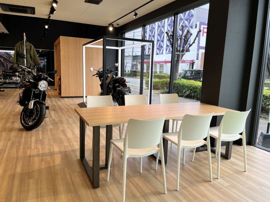 株式会社カワサキモータースジャパン福岡市の東、新宮町の「カワサキ プラザ福岡東」が店内をリフレッシュしてオープン!ウッディなフロアが優しいぬくもりを伝えます。経験豊かなスタッフが皆様のモーターサイクルライフをサポートいたします。