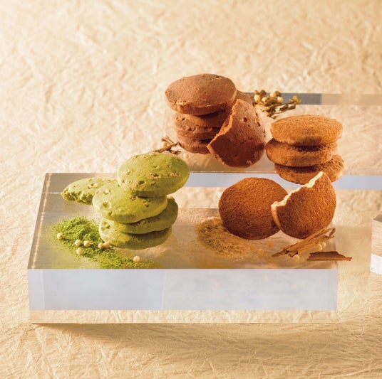 さくさくと歯ざわりのよいぶぶあられと、細かく砕いたローストアーモンドを生地に混ぜて焼き上げた、ほろっと口の中で溶けていくひと口サイズの焼きショコラ。[宇治抹茶]、[ほうじ茶]、[きなこ&シナモン]の3種類を詰め合わせました。