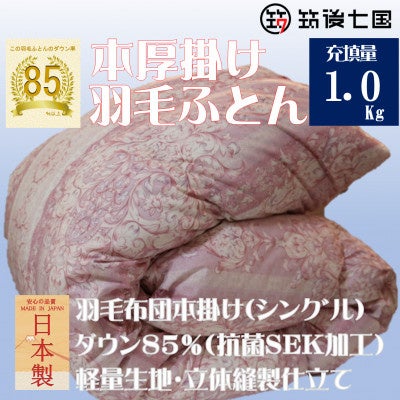 抗菌ダウン率85%1.0kg本厚掛け羽毛布団シングル(ピンク・ベージュ系)訳あり【筑後七国羽毛ふとん】