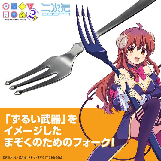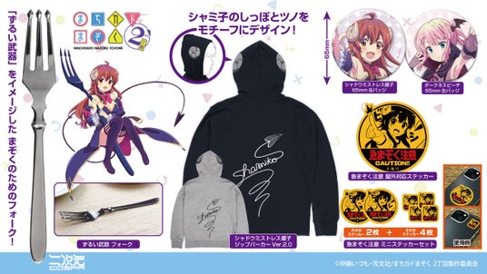 『まちカドまぞく 2丁目』より、“ずるい武器”をイメージした「フォーク」や「シャドウミストレス優子 ジップパーカーVer.2.0」、 シャミ子たちの「缶バッジ」など新グッズが 二次元コスパからラインナップいたします。