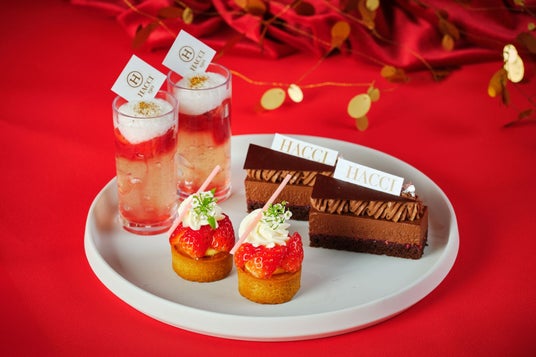 また、はちみつに美容成分をプラスすることで生まれた、美と健康に特化したHACCIオリジナルはちみつ「ビューティーハニー ヒアルロン酸入りはちみつ」を使用したスペシャルデザート「ベリーのパフェ いちごと抹茶のミルフィーユ」や、薔薇プラセンタと25%の天然ビタミン果汁配合で透明感あふれる美肌をサポートするビューティードリンク「ハニースノー」入りのスペシャルドリンクをオプションでご堪能いただけます。