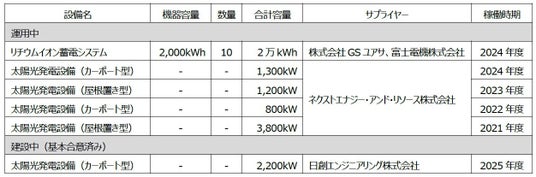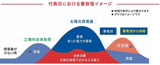 2021年から段階的に行ってきた9,300kW(建設中も含む)の自家消費型の太陽光発電設備と、このたび稼働した、国内の工場向けでは最大規模*2となる2万kWhの リチウムイオン蓄電池を連携します。