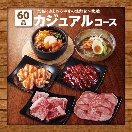 気軽に楽しめる幸せの焼肉食べ放題!60品『カジュアルコース』