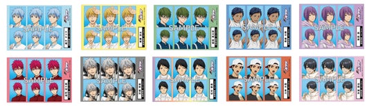 「黒子のバスケ キャラポップストア ~Hang Out in White Outfits~」の新規描き下ろしイラストを使用した証明写真風ステッカーです。