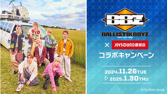 株式会社エクシングの子会社で、全国にカラオケ店舗・ネットカフェ店舗を展開する株式会社スタンダード(本社:東京都港区、代表取締役社長:米田洋一)は、2024年11月26日(火)から2025年1月30日(木)までの期間中、「BALLISTIK BOYZ×JOYSOUND直営店コラボキャンペーン」と題し、JOYSOUND品川港南口店(東京)・JOYSOUNDなんば戎橋店(大阪)・JOYSOUND博多口駅前店(福岡)にカラオケコラボルームをオープン!JOYSOUND品川港南口店では、エントランス壁面に巨大ビジュアルの特別展示を実施します!また、JOYSOUND直営店72店舗にて、オリジナルポストカード付きコラボドリンクを展開します。一部店舗では、コラボドリンクのテイクアウトも実施!