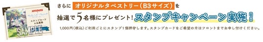 コラボドリンクをご注文でお渡しするスタンプカードに、ご利用金額1,000円(税込)ごとにもらえるスタンプを5つ集めて応募すると、抽選で5名様に「オリジナルタペストリー(B3サイズ)」が当たる、スタンプキャンペーンも実施します!