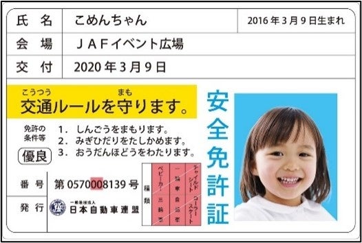 一般社団法人 日本自動車連盟集まれキッズ!子ども免許証&バッジキーホルダーを無料でプレゼント!