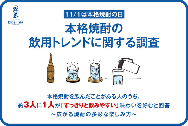 霧島酒造、本格焼酎の飲用トレンド調査を実施。全世代が「すっきりと飲みやすい」味わいを最も重視、20代は「フルーティーな香り」への期待、40代以下では食事に合わせて飲み方を変えるペアリング志向が判明