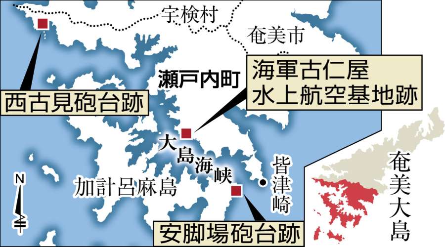 米潜水艦による被害が南方航路で後を絶たず、佐世保鎮守府は1944(昭和19)年、佐世保航空隊の水上偵察機4機を古仁屋に常駐させた。哨戒・迎撃任務に当てたが戦況悪化に伴い、沖縄方面への特攻作戦に参加。町誌によると、45年3月以降、四十数機が出撃した。