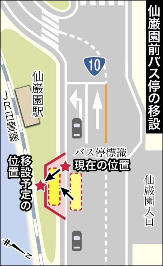 鹿児島交通によると、(1)バス停やバスベイ(バス停留スペース)が丁字路交差点内にある(2)バスベイから走行車線に戻る際、短い間で2車線分の変更が必要(3)乗客が仙巌園からバス停まで2度の道路横断が必要-を理由に、安全性が確保できないなどと判断した。適切な場所への移設を国道事務所に申請したが許可は得られず、「苦渋の決断」としている。南国交通は移設バス停を利用する。
