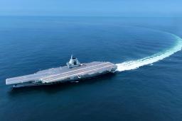 中国空母、南シナ海で訓練 「福建」近く就役か