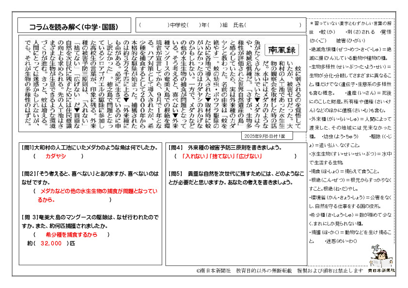 南日本新聞には、こども新聞をはじめ子どもたちの国語力・読解力・作文力などの学力向上をサポートする紙面が満載です。