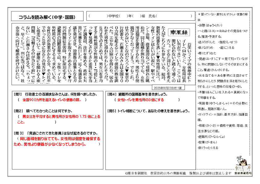 南日本新聞には、こども新聞をはじめ子どもたちの国語力・読解力・作文力などの学力向上をサポートする紙面が満載です。