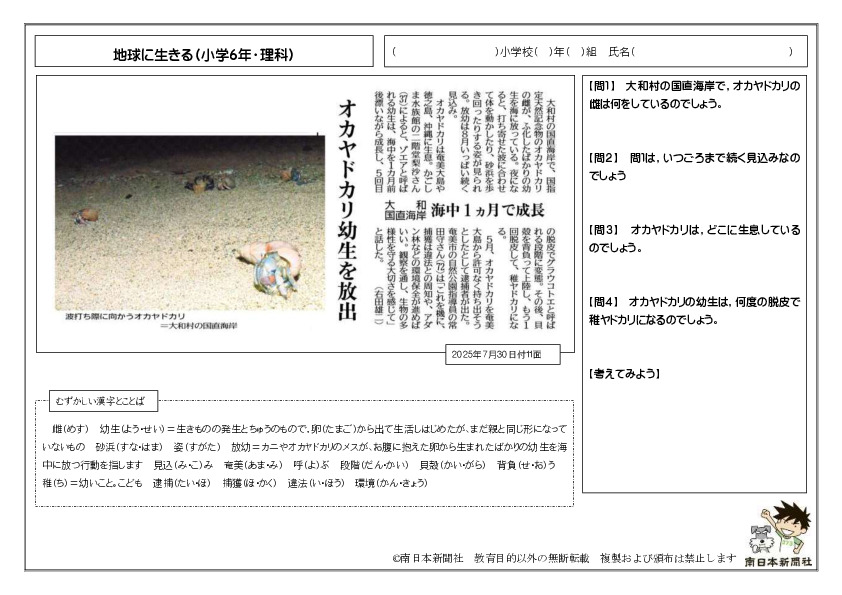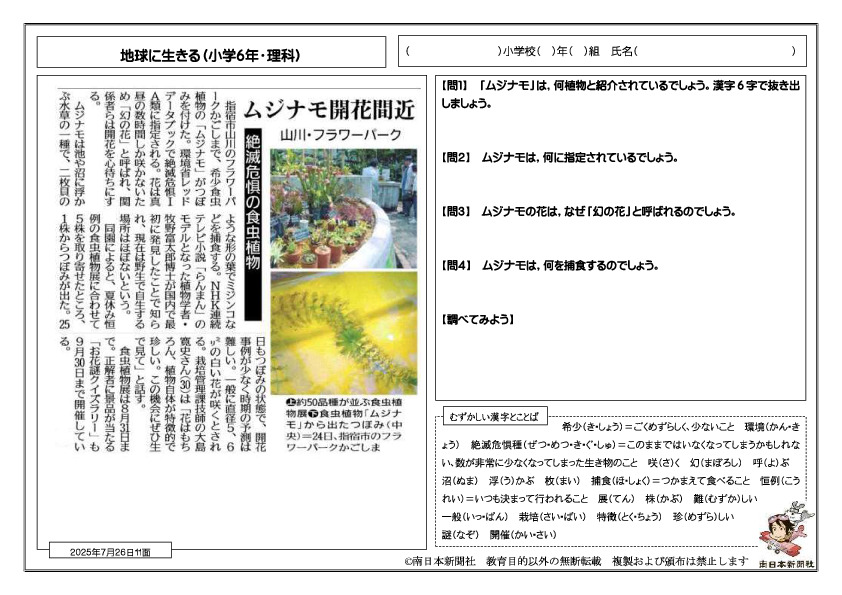南日本新聞には、こども新聞をはじめ子どもたちの国語力・読解力・作文力などの学力向上をサポートする紙面が満載です。
